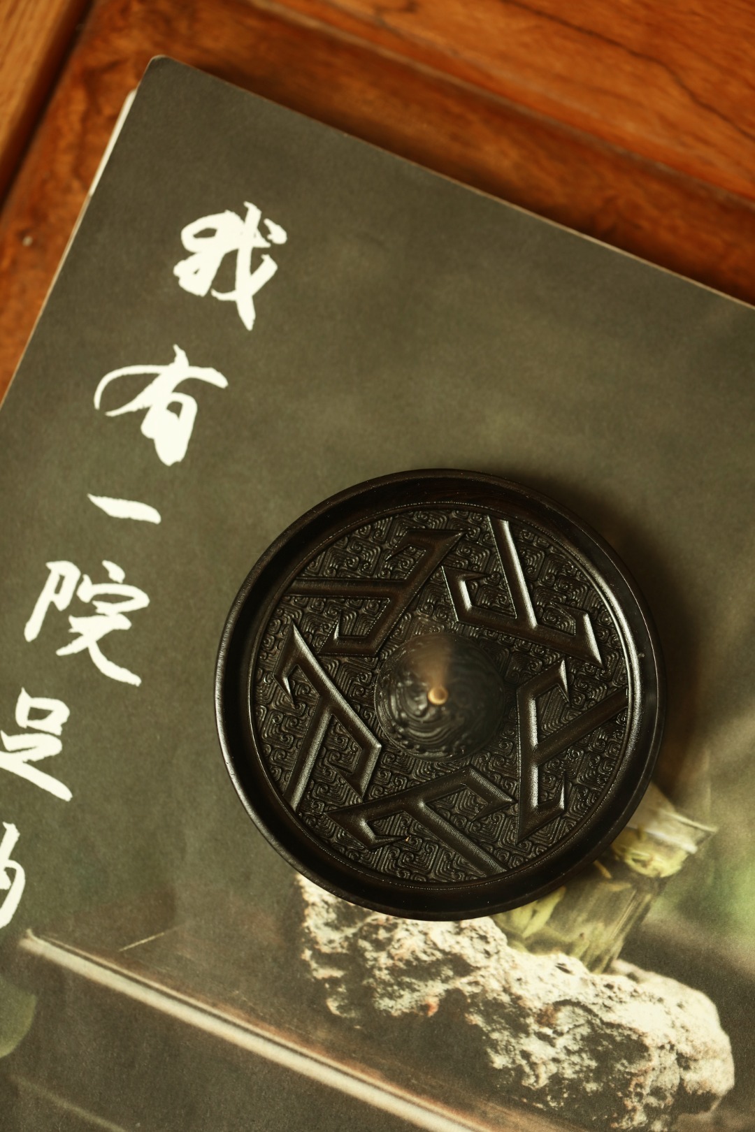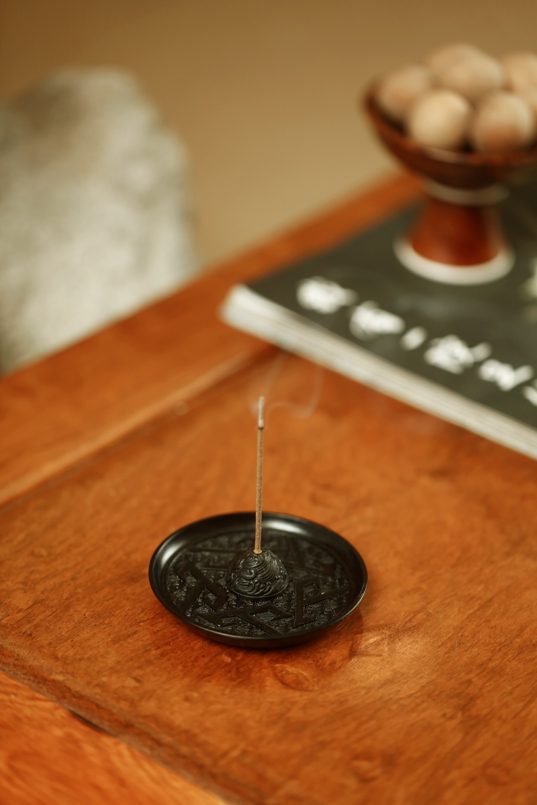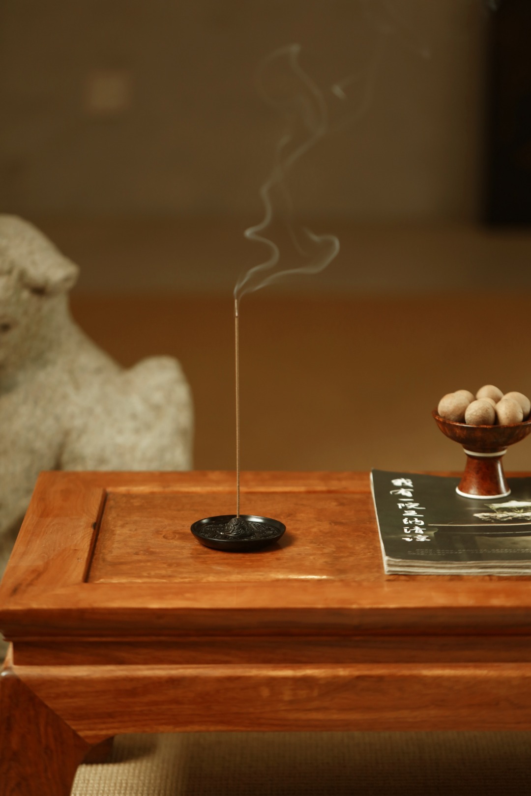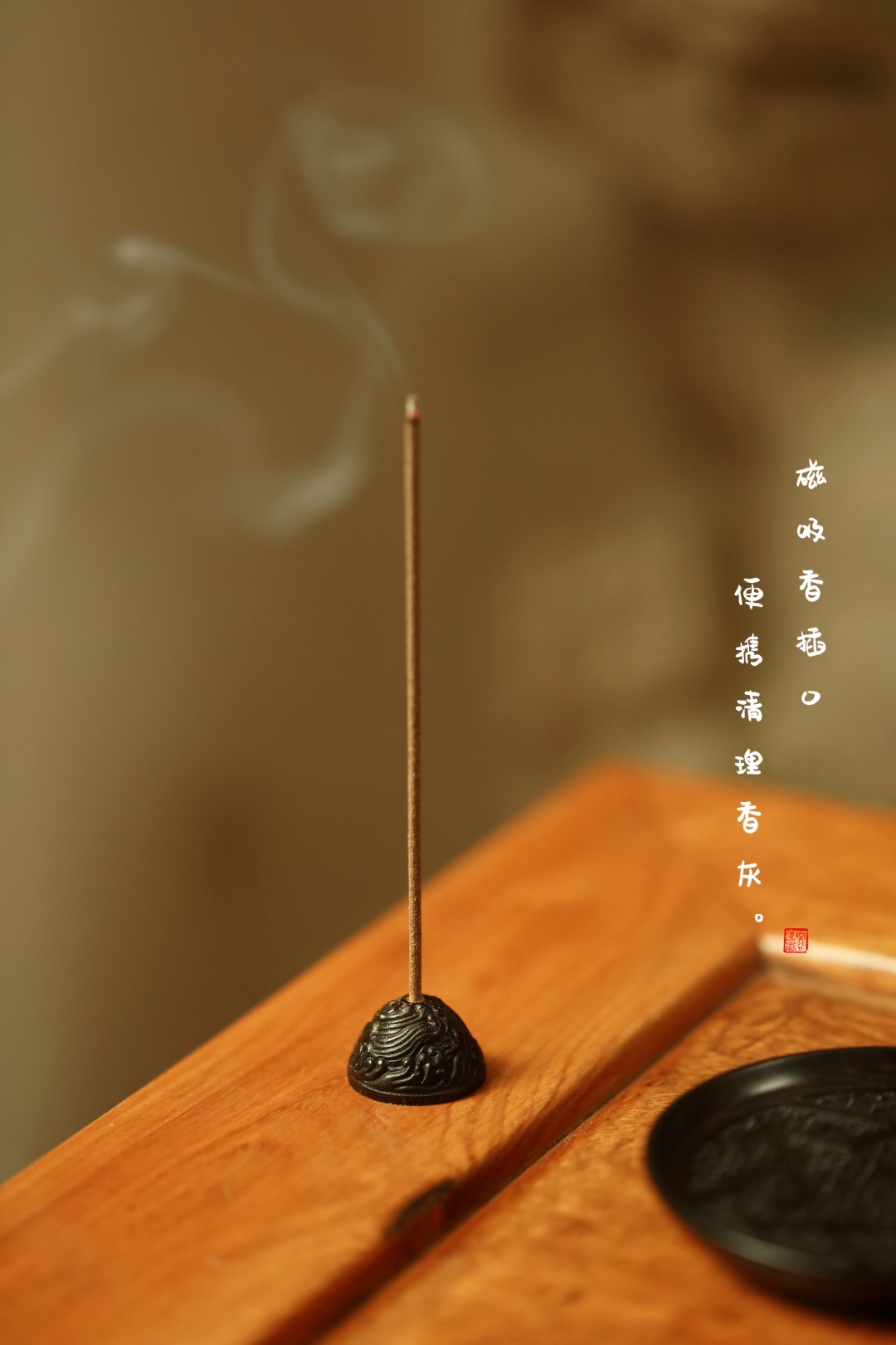 取材紫光檀老料,满雕如意纹,磁吸香插,便携清理香灰,木质细腻,细致入微,案头燃香,文雅之物。