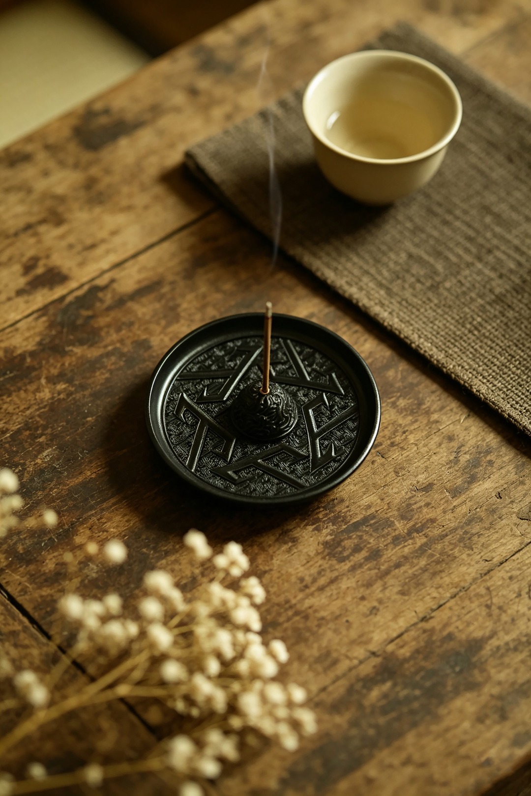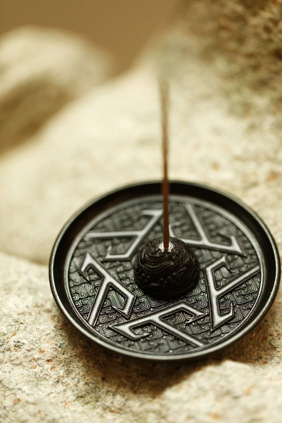 紫光檀|如意纹·香插取材紫光檀老料,满雕如意纹,磁吸香插,便携清理香灰,木质细腻