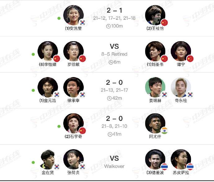 女单:王祉怡 12-21,21-17,18-21 安洗莹