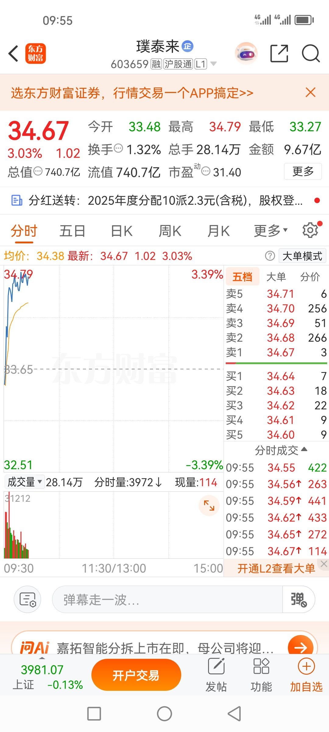 盘前分享的璞泰来603659,直接拉升,一下就三个多点了,太牛了,林哥实力真的是毋庸置疑!
