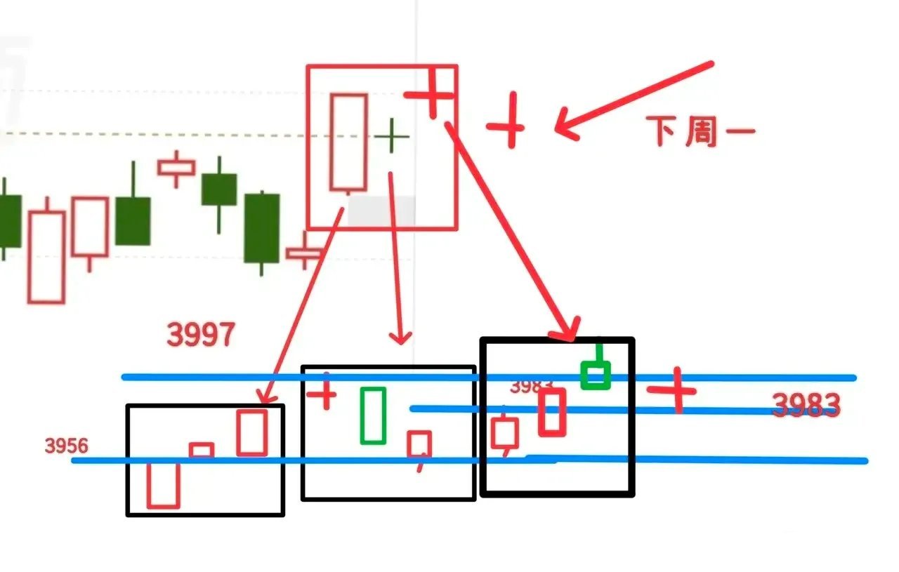 今天没什么好慌的,主打一个做T。如果你看了我的文章还着急心慌,那真是白费我一片心意了。目前大盘基本在按上周五预判的节奏走,整体仍在预期内,没有明显偏离。关键看区间:低点3967附近,高点3983附近,大概率震荡拉锯——策略就是低点接、高点抛。对照我周五画的拆解图,走势是不是越来越像了?今天可以不格局,只专心做T。