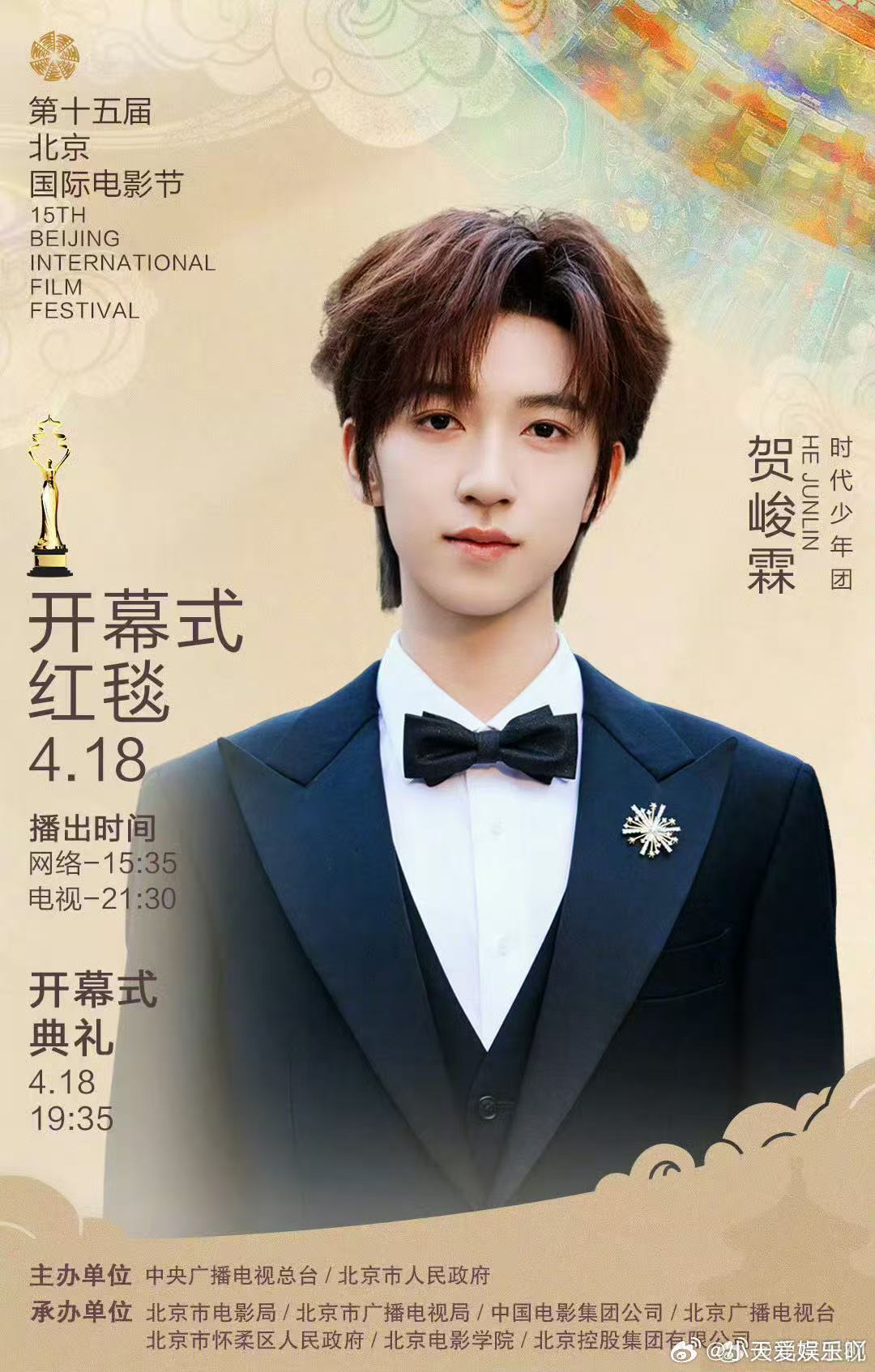 北影节开幕式红毯阵容贺峻霖连续三年参加北影节 贺峻霖确认出席第十六届北影节开幕式