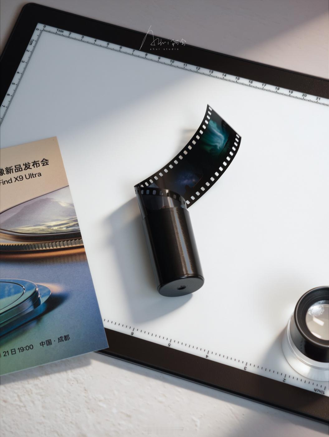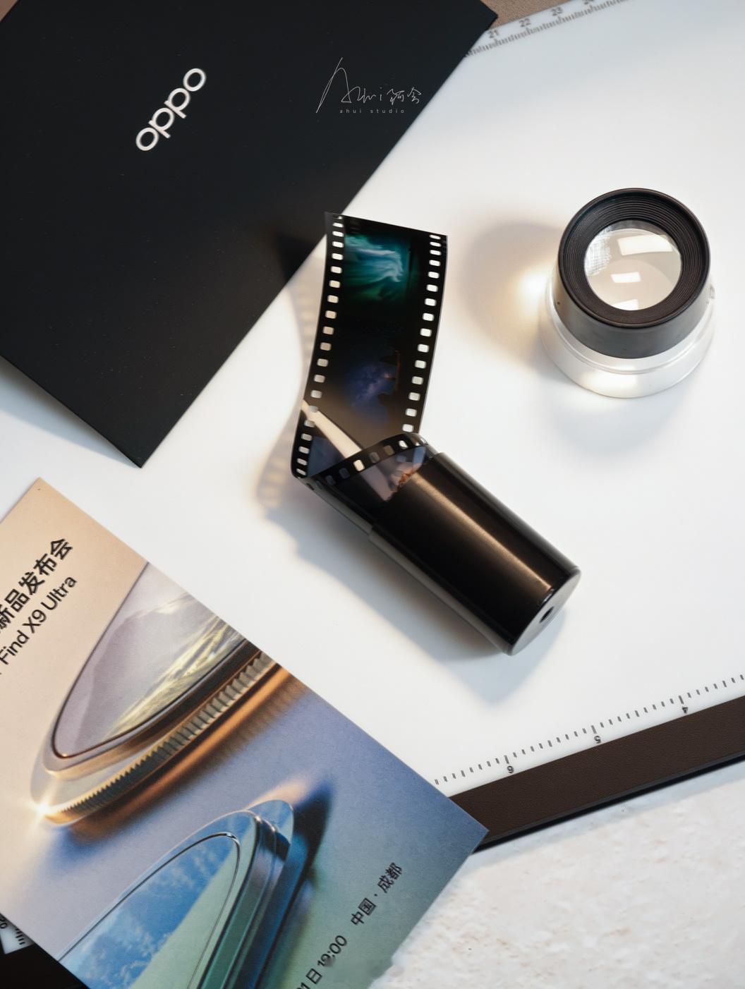是一套完整的胶片观片套装,包括底下的观片台,简单来说是显色很准的平板灯,仪式感很足了!透过放大镜看胶片的质感,真的很有格调,不仅OPPO Find X9 Ultra,X9s Pro也会共同搭载哈苏大师模式胶片风格,专业口袋哈苏,确实是这个味~