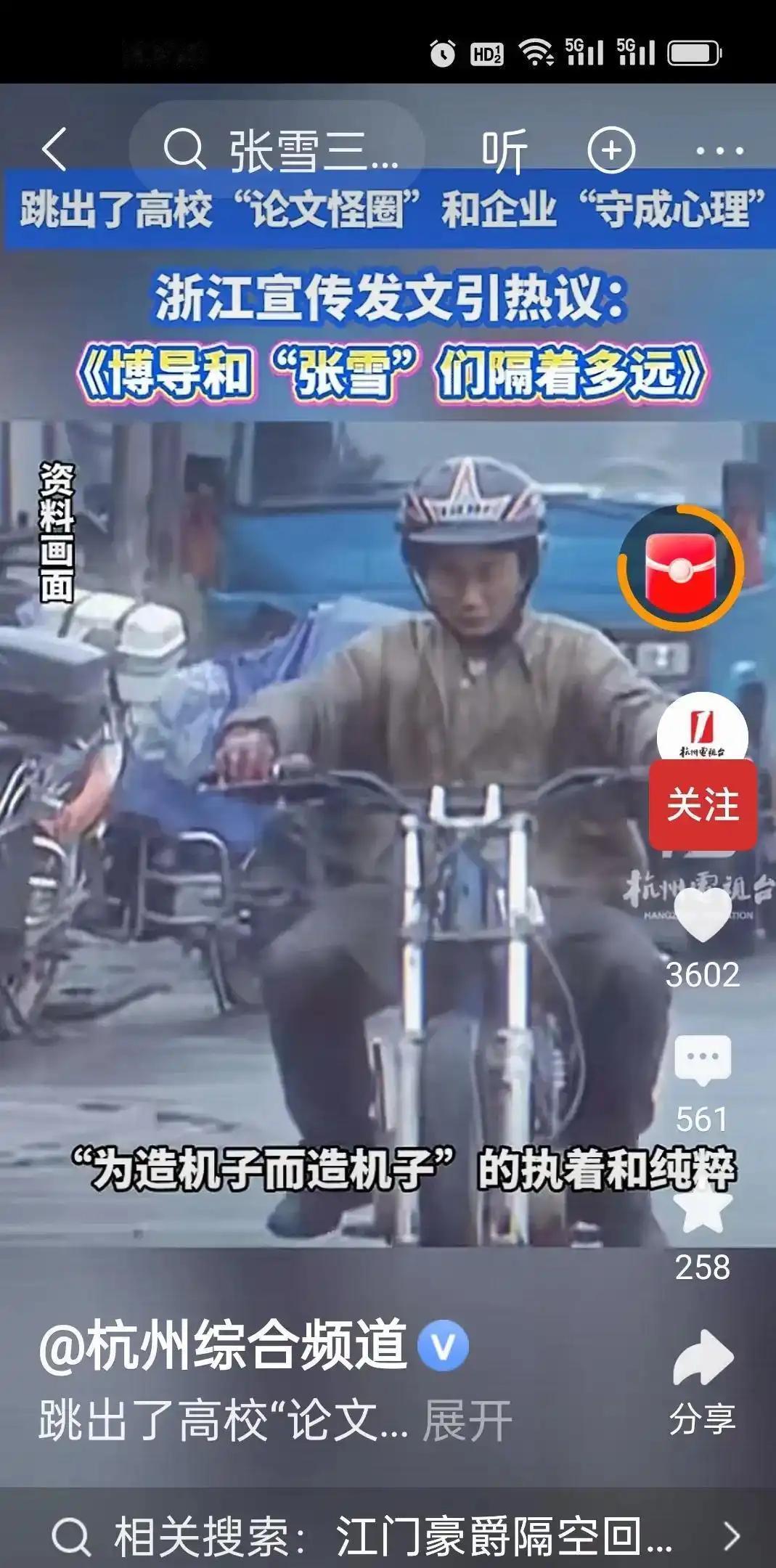 浙江宣传太敢说了!为什么英文好、会在顶级期刊发数篇论文的博导,造不出世界第一的机车?而初中学历的张雪,却能造出领先全球的发动机?