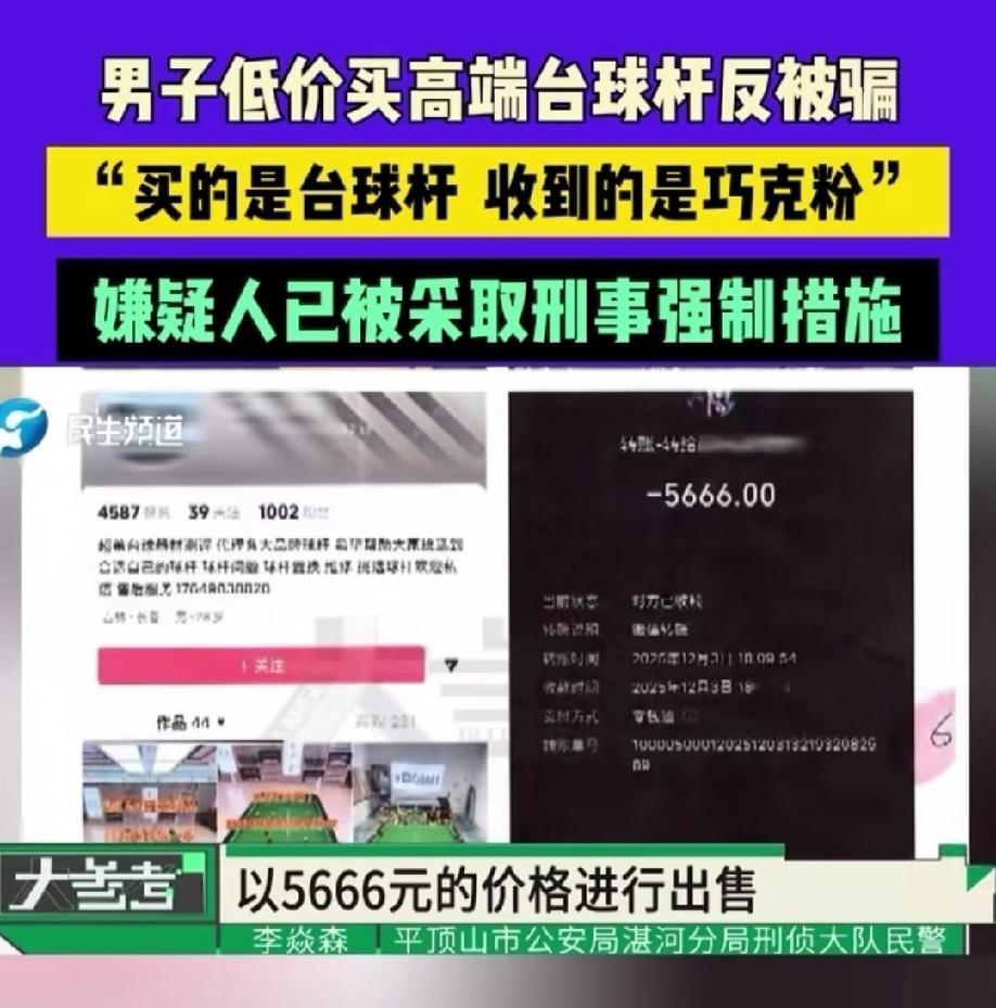 这就是贪便宜的下场!河南平顶山,男子看到朋友圈有人出手一个热门的台球杆,这款球杆全新的要18000多元,朋友圈这款只要5000多,男子感觉捡到了大便宜,当即给朋友转账5666元,期待着收获。不料,等了几天,男子只收到一块巧克粉,并没有球杆,男子再次催促,收到的却是一个空的快递单号。男子这才意识到被骗,赶紧报警,真相让他直接惊掉下巴。