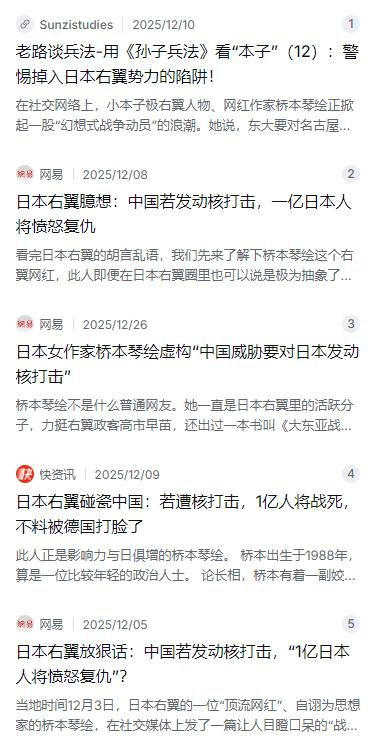 桥本琴绘的疯狂言论,看起来像是胡言乱语,但如果把视线拉长,就会发现这并不是孤立的个人表演。2025年底到2026年初,日本右翼在核武器问题上动作频频。2026年1月8日,中国军控与裁军协会与中核战略规划研究总院联合发布了《日本右翼的核野心:对世界和平的严重威胁》研究报告,明确指出日本右翼势力正在利用各种手段为拥核铺路。