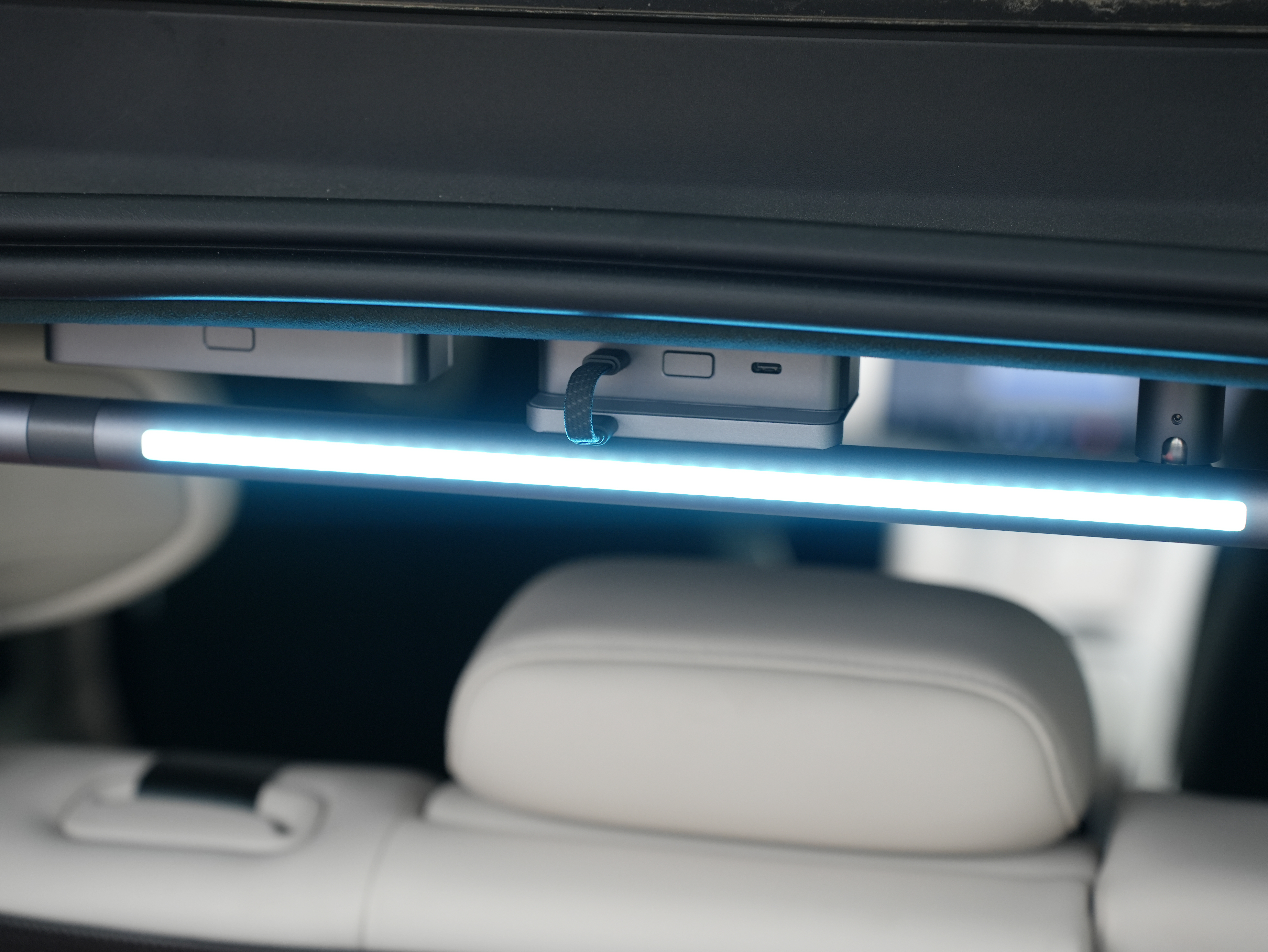 前天刷到了个YU7的小蓝灯,就阿东下单了,隔天就到,刚好我车上已经装轨道了,安装很容易,辅助驾驶状态的时候这个蓝灯会自动亮起来,在车尾看就有个小蓝灯的光效,平时5000K的驾驶舱照明用,后备箱开启也会自动补光,接入了车机系统的,还蛮有趣,也实用