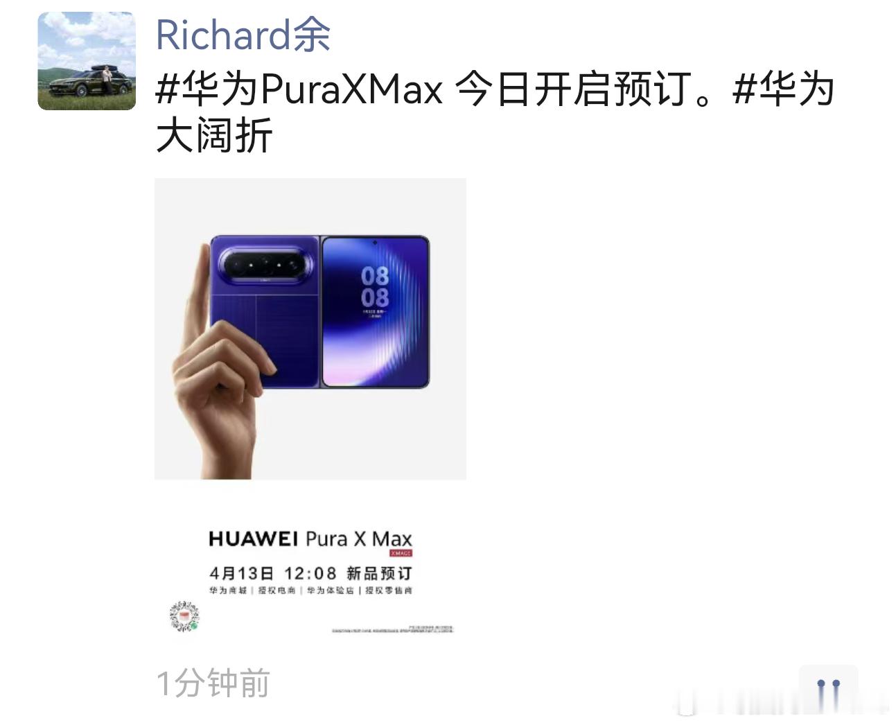 华为PuraXMax,老余连发三条朋友圈华为官宣大阔折命名puraxmax 华为puraxmax来了 华为大阔折