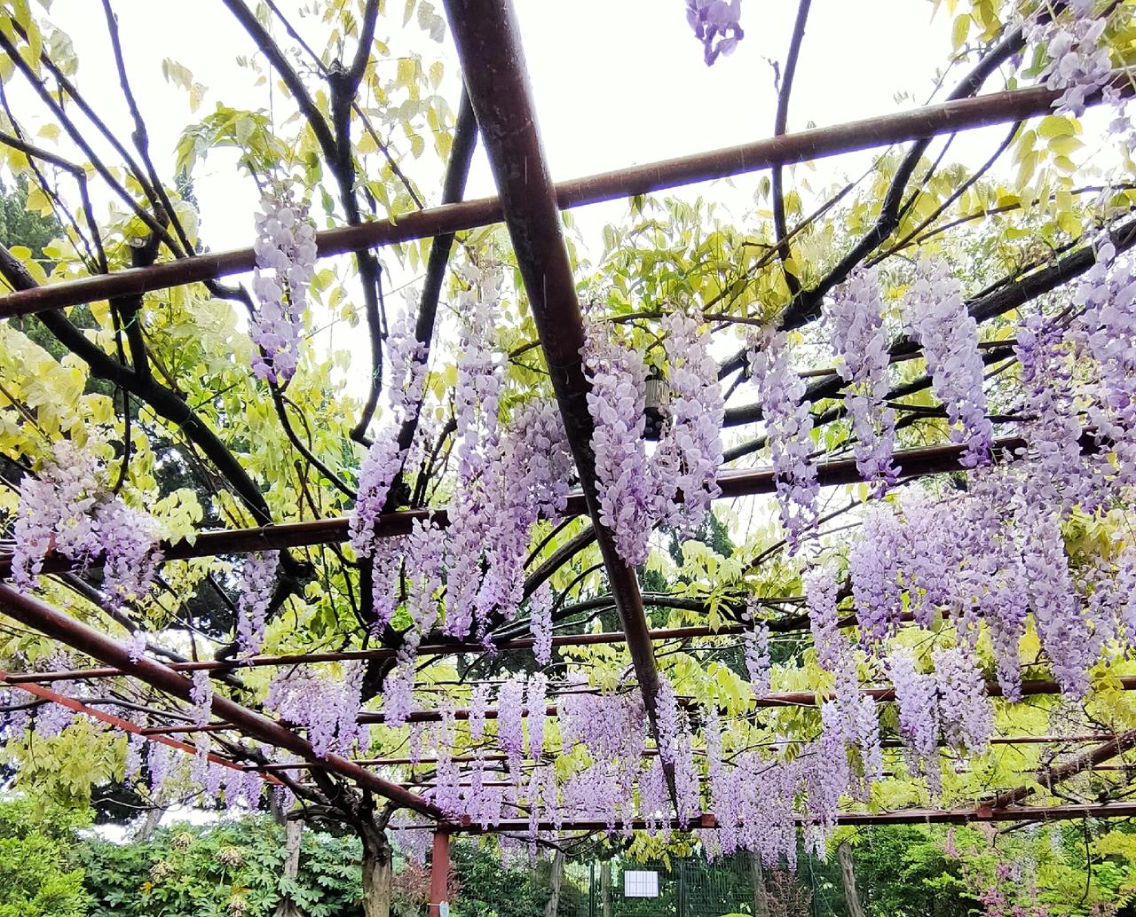 紫藤挂云木,花蔓宜阳春——李白 (简洁而生动地描绘出紫藤花依附高大树木,在春日