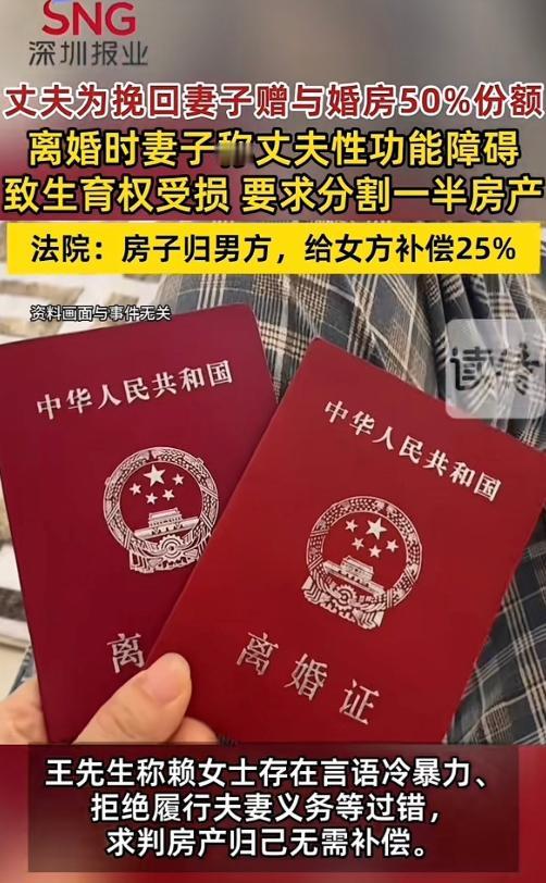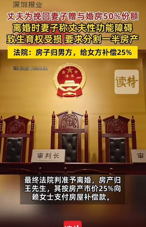 广东深圳,一男子那方面不行,婚后一直无法满足妻子的正常需求,为了挽留妻子,主动提出把自己婚前房产加上妻子的名字,谁知道刚加上没多久,妻子就将男子起诉,要求离婚,男子不干了,要离婚可以,把房子还回来,妻子:你带给我的伤害比这严重多了,这是我应得的!没想到法院最后这样判了!