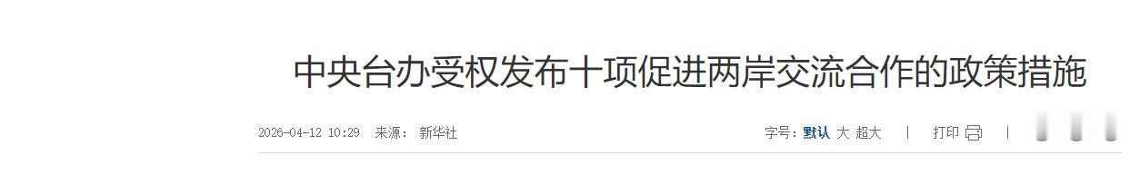 信息来源:《中央台办受权发布十项促进两岸交流合作的政策措施》,新华社,2026年4月12日。