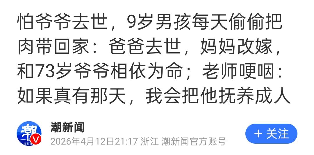 他说“怕爷爷也去世”的时候,没有哭天喊地,就是安安静静地看着你,那个眼神,直接把老师的心给扎碎了。