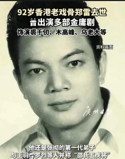 最让人破防的是82岁邵氏老戏骨郑雷离世。曾是“邵氏五虎”,演过《神雕侠侣》裘千仞,一生甘当绿叶,用演技刻进几代人的青春。没有热搜刷屏,却让无数网友感慨:一个时代的武侠记忆,又少了一位见证者。