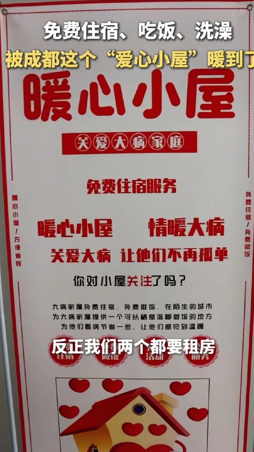 华西医院门口,一位女孩举着一块牌子,上面写着:**免费住宿吃饭**。