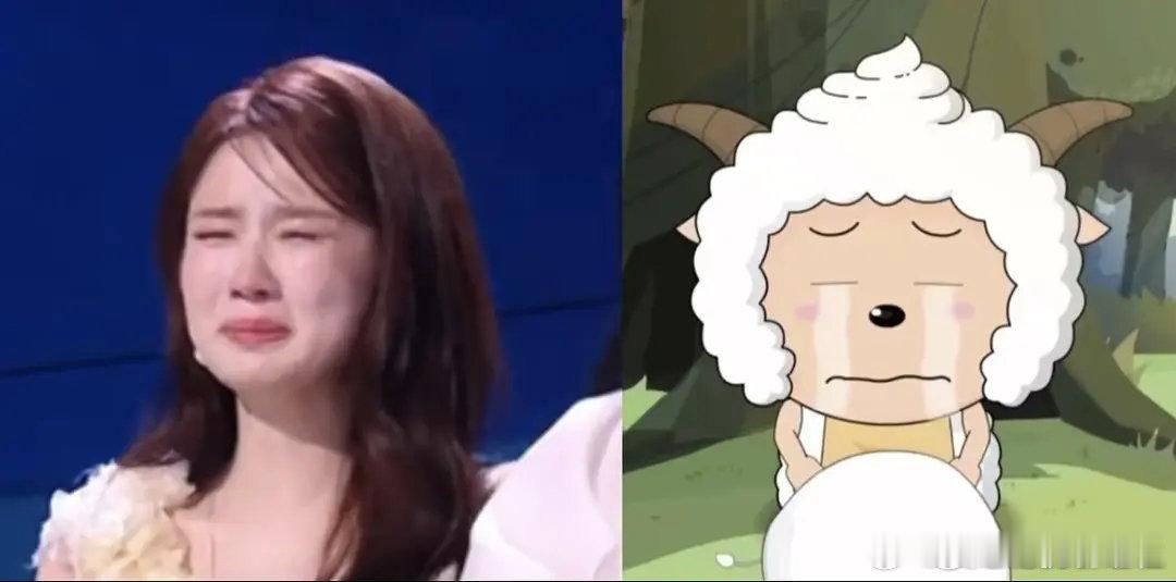 张慧雯撞脸懒羊羊,简直就是懒羊羊在逃分羊🐏!哭哭包太可爱啦!