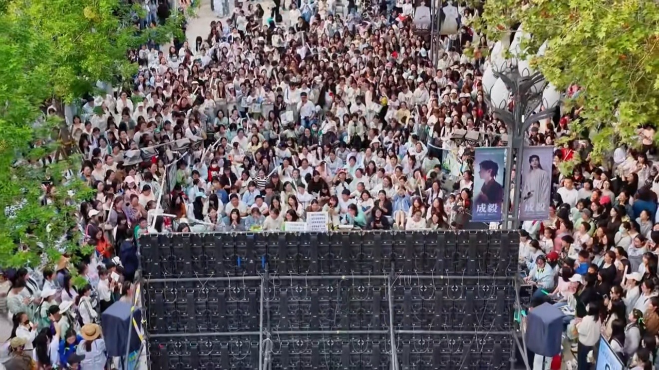 这只是一个城市,成毅粉丝自行组织的两京十五日剧宣活动,都这么多人,线上人多,线下人更多。这比氵洋芋开机人数多出100倍,怪不得虾如此深柜成毅。