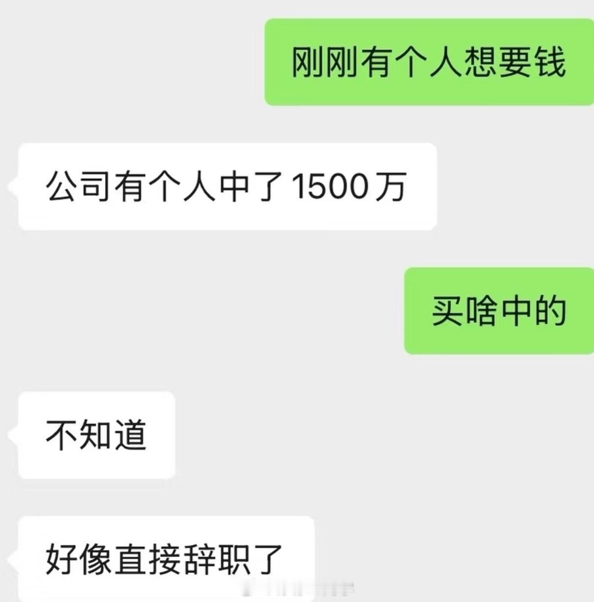 咱就说现代人怎么那么浮躁浮夸呀?这不就是1500万吗?中了奖就裸辞。1500