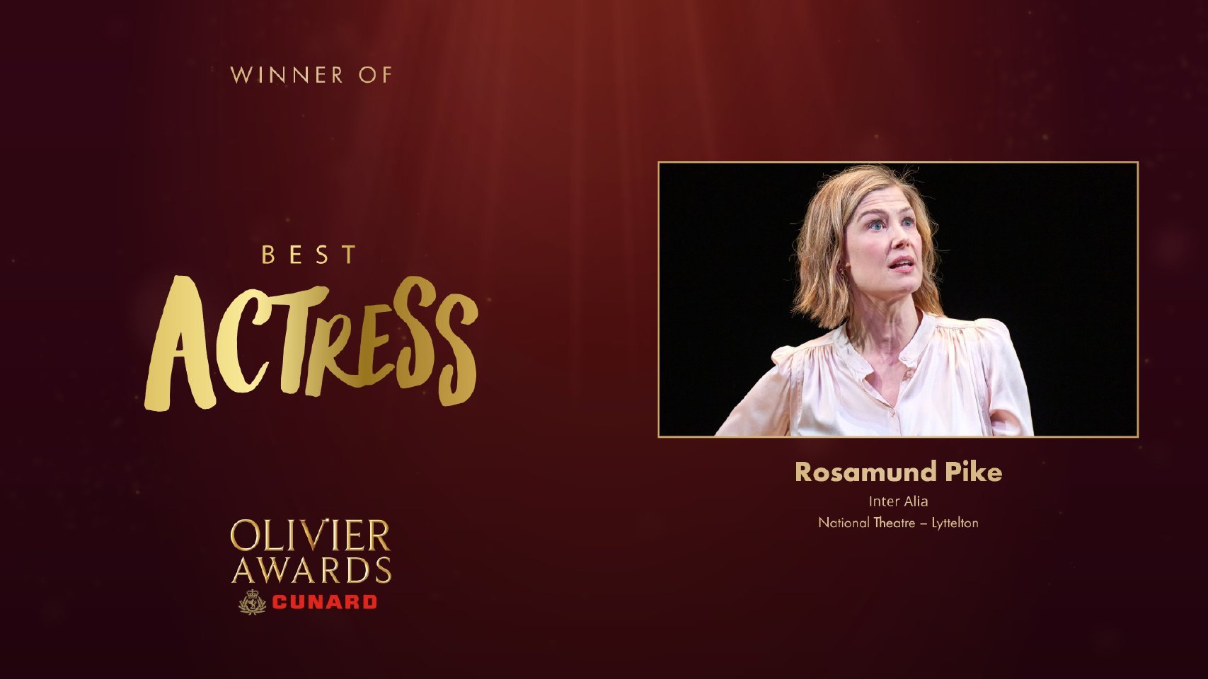 恭喜!裴淳华(Rosamund Pike)昨日凭借非穷尽列举斩获2026年英国戏剧界最高荣誉奥利弗奖最佳女主角,这也是她首次获得戏剧类大奖。
