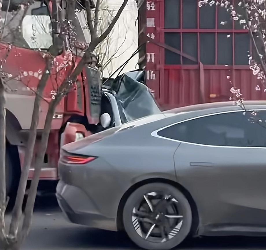 名是真大啊!还好是大货车,没撞到电池,这要是撞到电池,那就真不好说了!