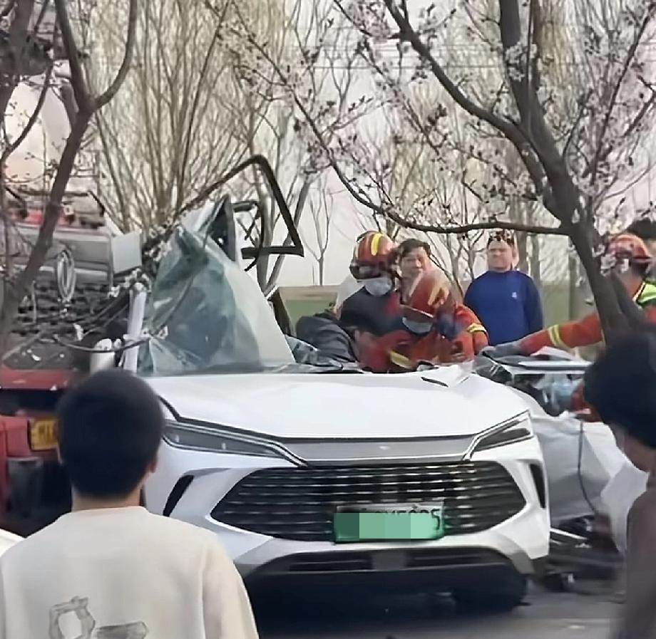 车都变形了,人看着状态还不错,
