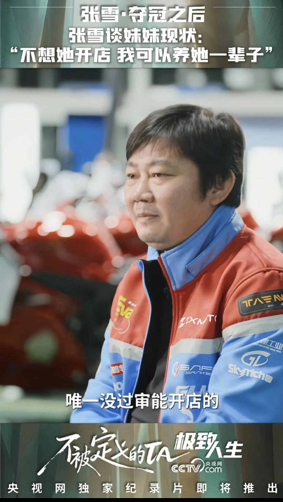 张雪面对采访,很宠溺又无奈的笑着谈起了自己的亲妹妹,他说:我的心里其实非常不想让她开机车店的,一点都不想,我本来想就这样养她一辈子都行,可她就是不愿意,不听我的,要知道她是我这么多店里唯一一个没有过审就能开店的,因为我欠她的,当年我妹把自己辛苦攒的买房首付全拿给我创业了,那个时候她一点后路都没给自己留。