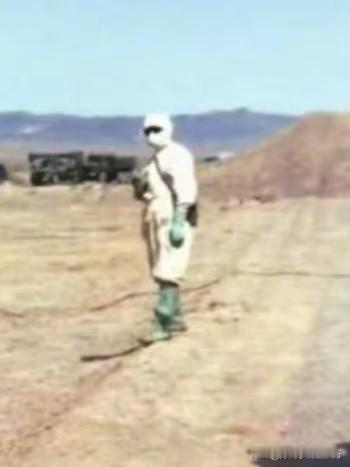 [呲牙] “我国第一次特种合金弹实验”——什么?您问“特种合金”是什么?您看看图1画面左侧那位,您觉得他为什么要穿防化服呢?