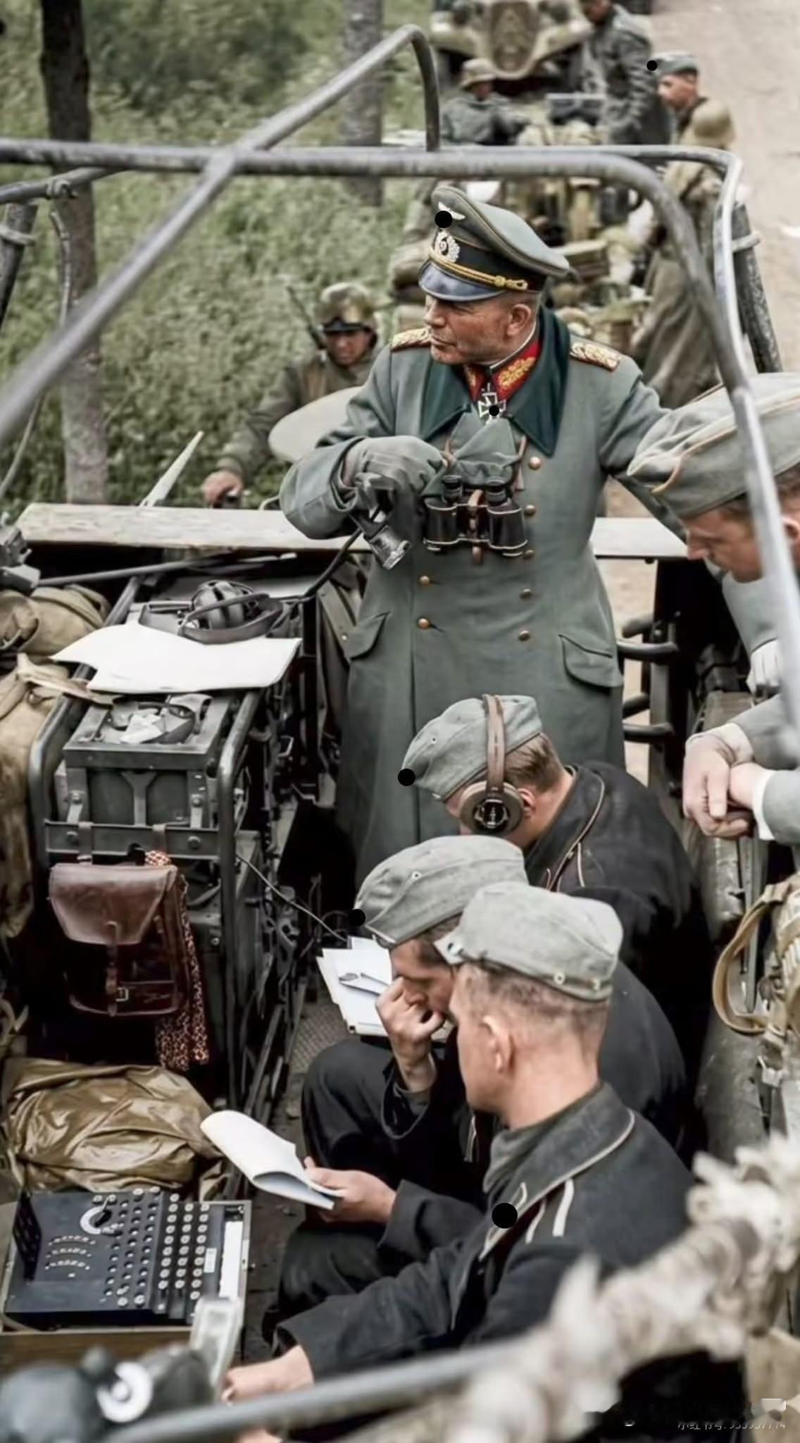 [呲牙] 这两张照片不知道当年是否通过了德军的新闻审查?图中恩尼格玛密码机清晰可见。