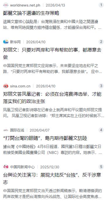 郑丽文不只是一个批评者,她也在积极找出路。今年4月7日她率团访问大陆,临行前说了句大实话:“和平之下,每个人都是赢家;战争之下,每个人都是输家”。她公开主张在“九二共识”基础上重启两岸制度性对话,还说若有机会,“不要说见一次,见100次都愿意”与大陆高层会面。她强调国民党只要执政,就要走和平发展道路,向外界证明和平是一条走得通的路。
