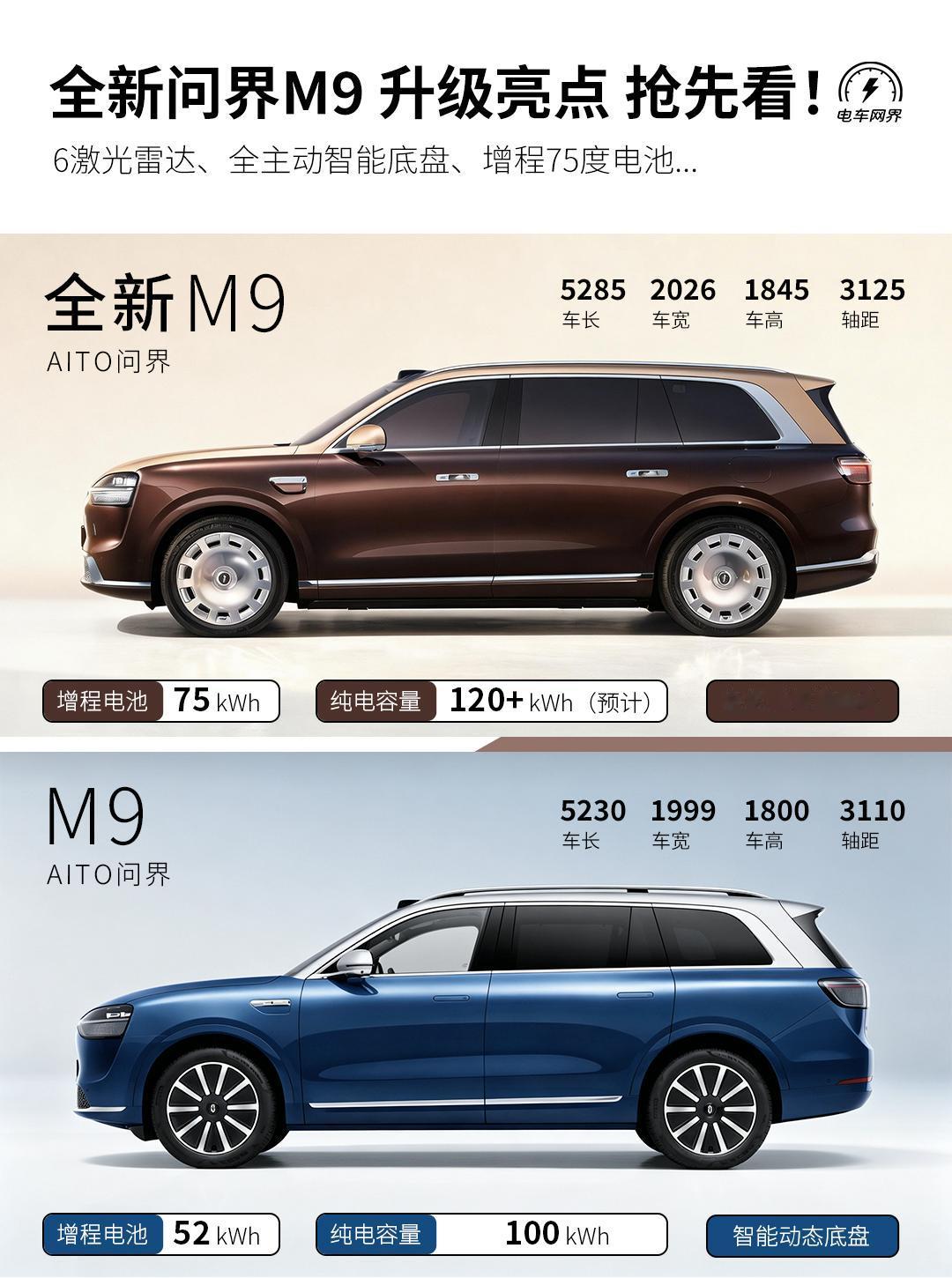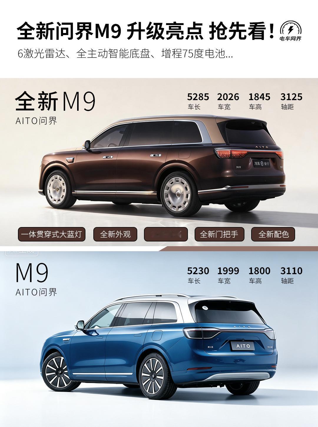 全新问界M9来了,尺寸全面加大,全新外观、全新的配色、全新的轮毂、全新把手。