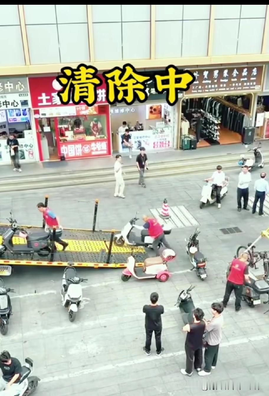 整治前,商圈地铁口、步行街、广场步道,日均违规停放电动车超2.3万辆,最密集区域每平方米就有1.2辆电动车,行人通行率不足30%,不仅堵死步行通道,更埋下严重消防、交通安全隐患,长期是城市管理的老大难问题。