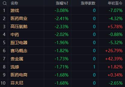 板块方面,锂电板块、算力产业链、能源金属、ST板块涨幅居前;游戏、医药商业、中药、贵金属等板块跌幅居前。