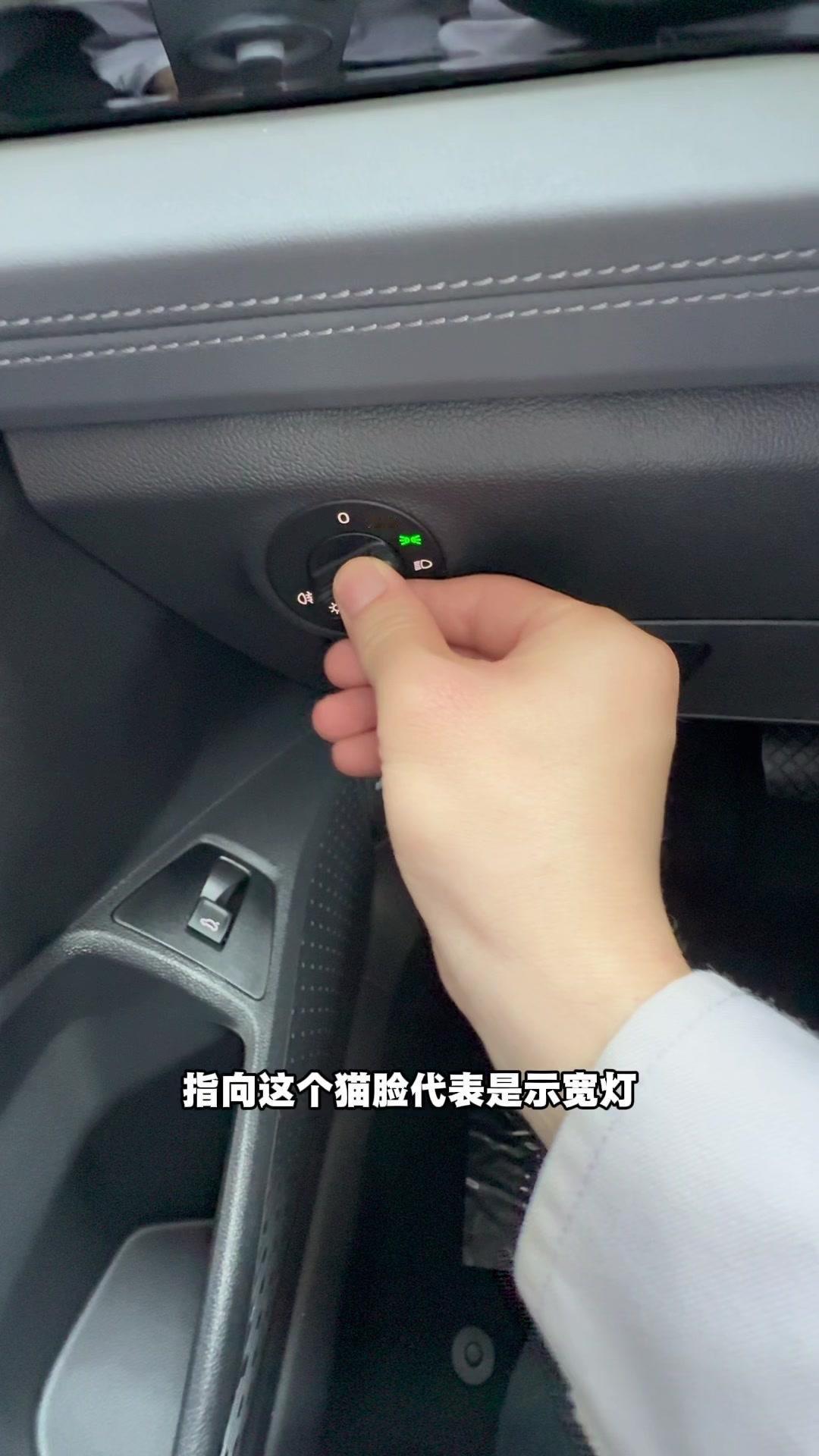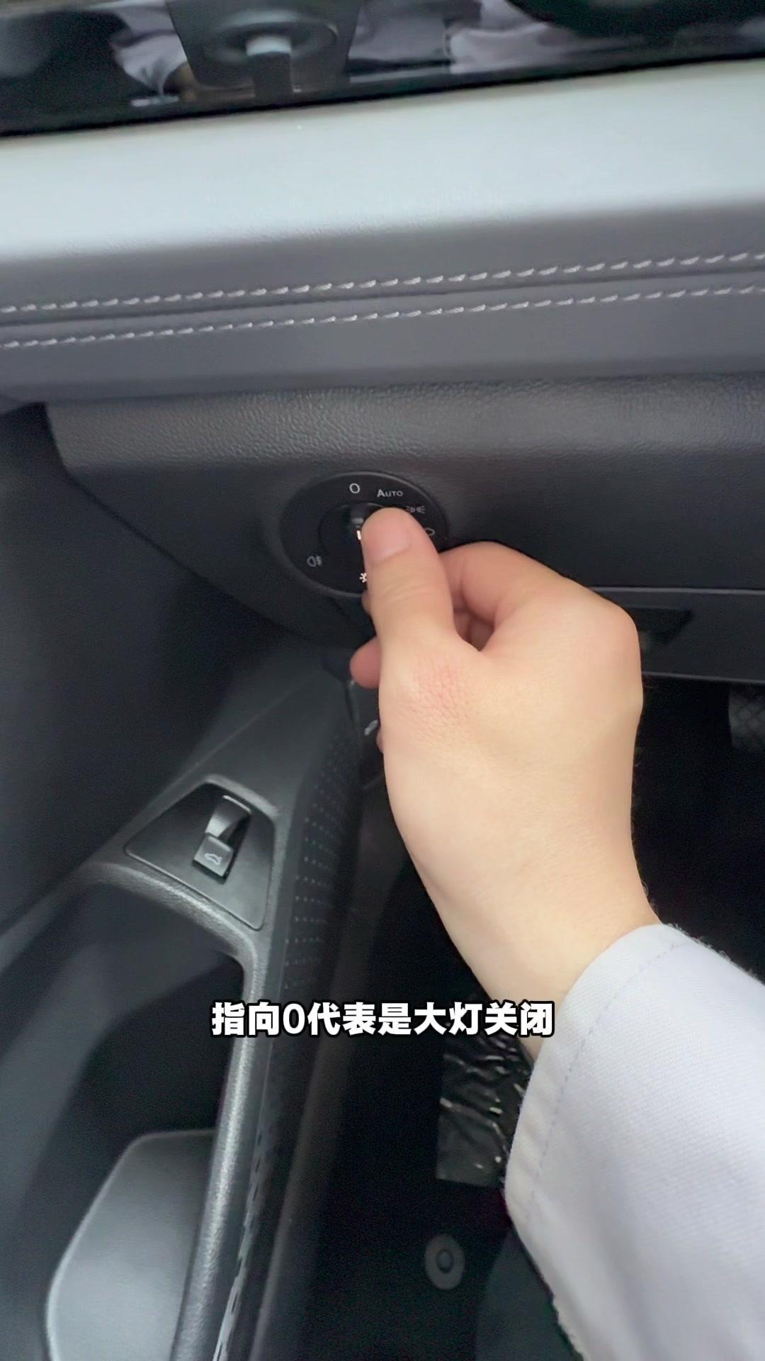 1️⃣灯光系统:大灯开关指向0关闭,Auto自动开,猫脸示宽灯,近光开启;前雾灯因车型无此配置仅提及。