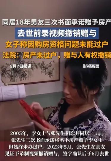 可她哪里知道,张先生就在去世前1个月,竟在亲人的见证下,录了一段视频,撤销之前给李女士的房产赠与。