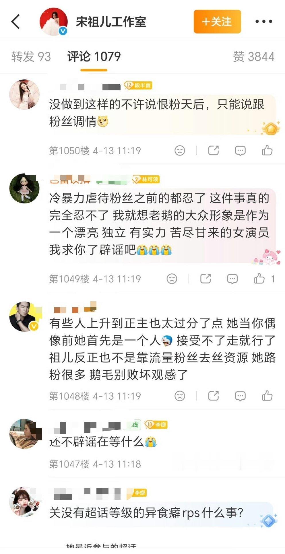 宋祖儿小号的事,粉丝好像挺崩溃的,在工作室下面要求工作室辟谣