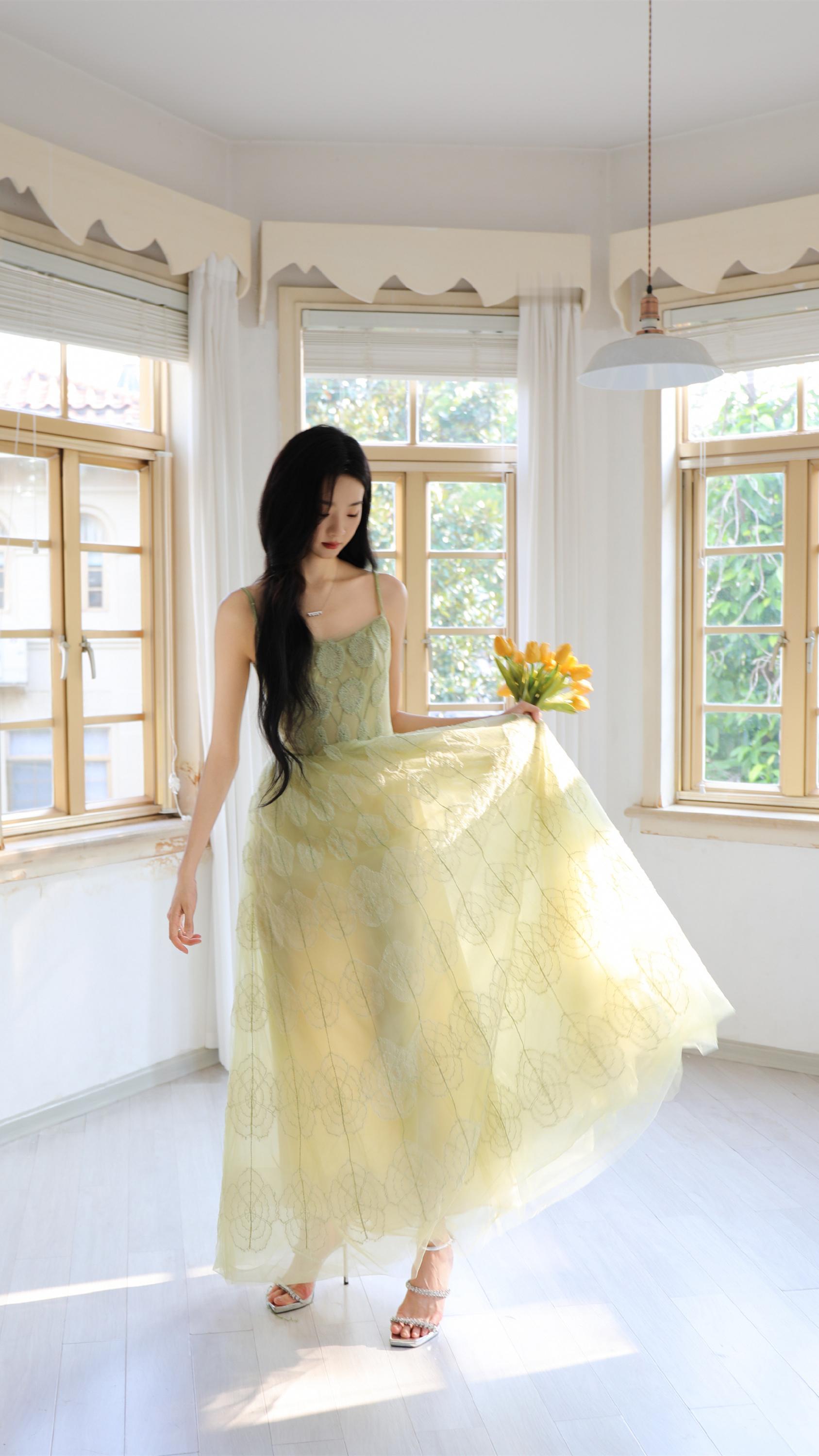 这种甜辣仙气风你们爱了吗?穿搭看心情,鹅黄纱裙裹着软乎乎的仙,褶皱设计又藏着甜辣