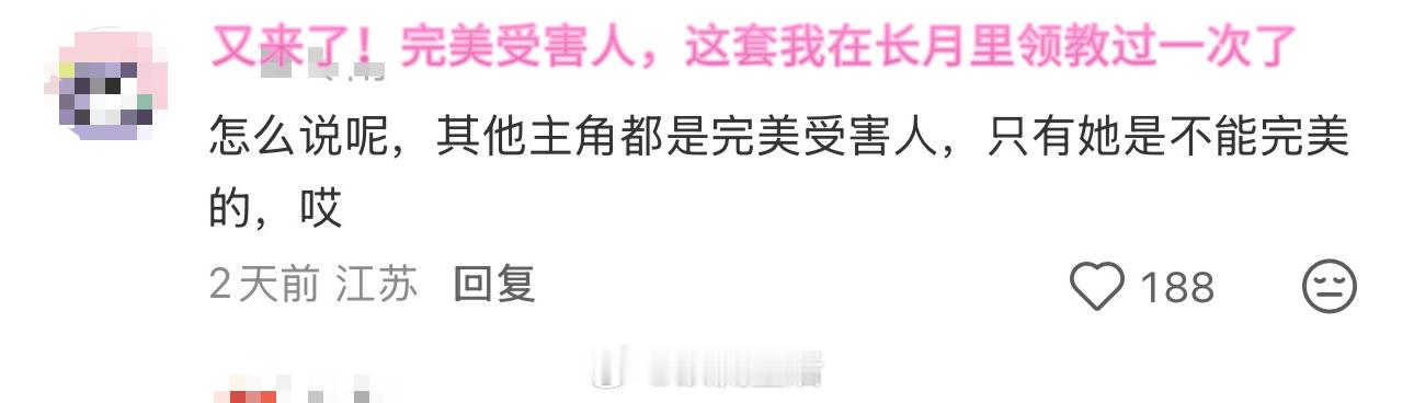 最近两天不知道咋回事儿,突然窜出来大波黑,搞一些莫名其妙的评论感觉看粉圈打架像在看一群外人对着月鳞姐妹俩指手画脚、、说白了有些人就是看不惯姐妹情深,鞠婧祎演得挺很有带入感,心疼姐姐那股破碎感非常好品,非得用对比苦难那套把两个好好的角色对立起来,暗戳戳的踩一捧一,这心思别搬到月鳞来了好不🙄