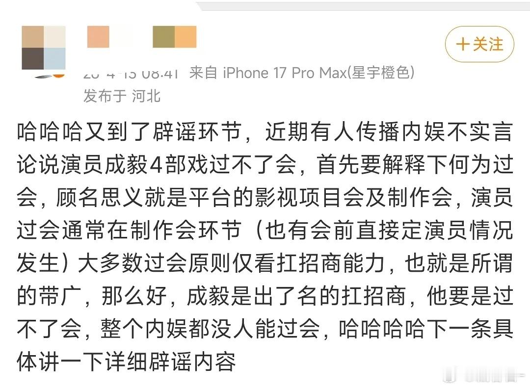 这两天一直在传有人四部剧不过会,都在猜是不是成毅,现在有业内出来说成毅不过会就没人能过