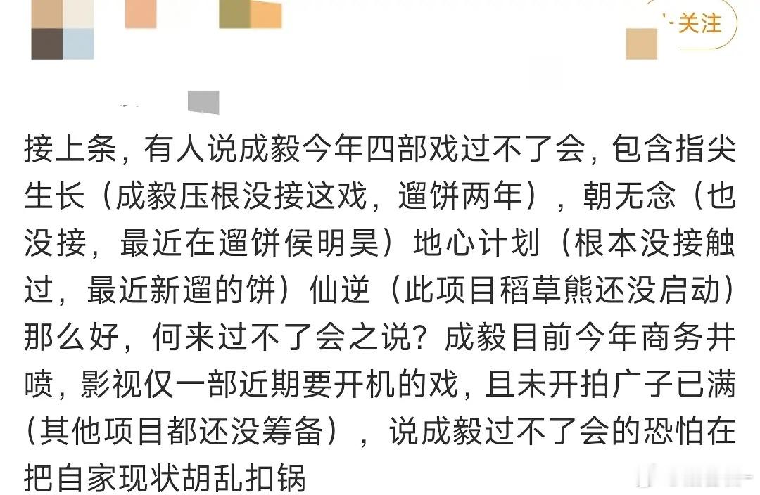 这两天一直在传有人四部剧不过会,都在猜是不是成毅,现在有业内出来说成毅不过会就没