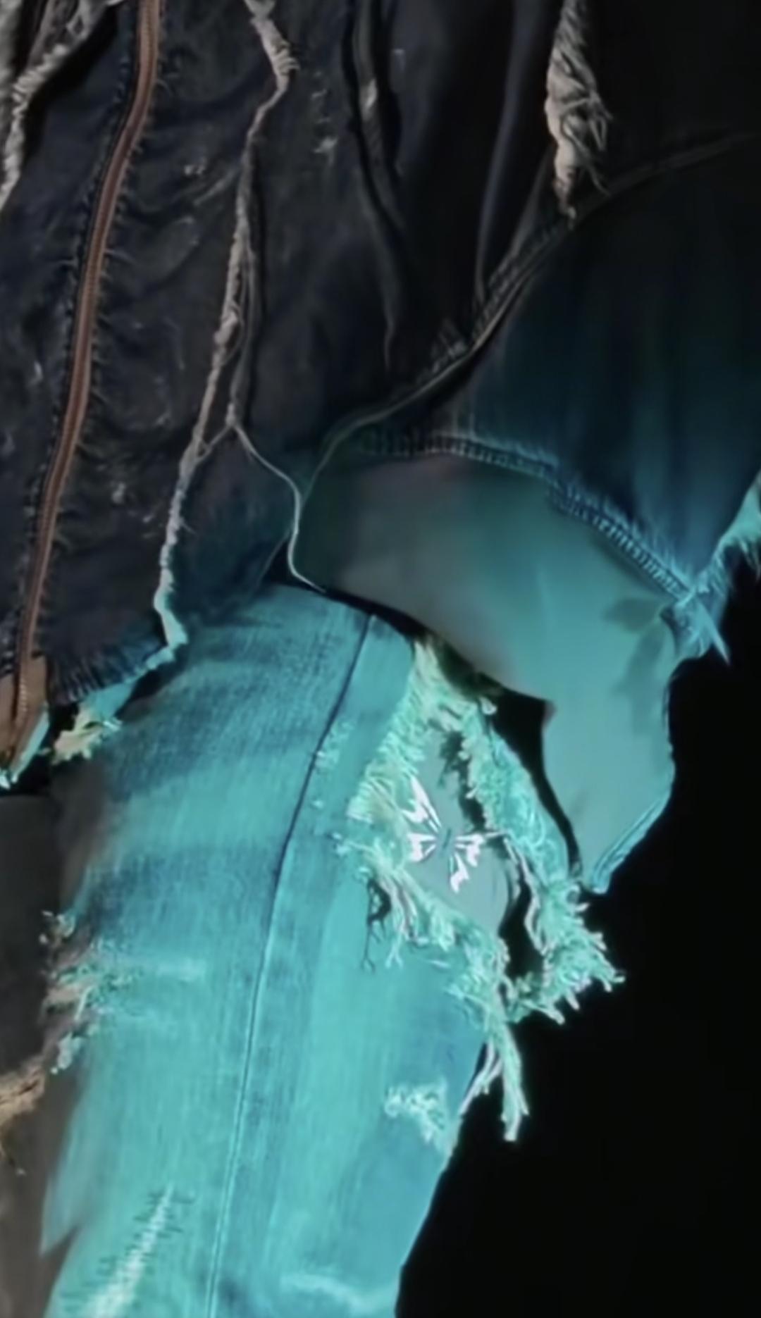 裤子破洞都能破得这么有艺术感。