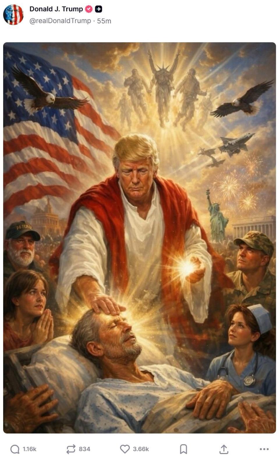 川普自己发的。 再说一遍,川普自己在社媒上发的。 小编不太了解西方的宗教人物
