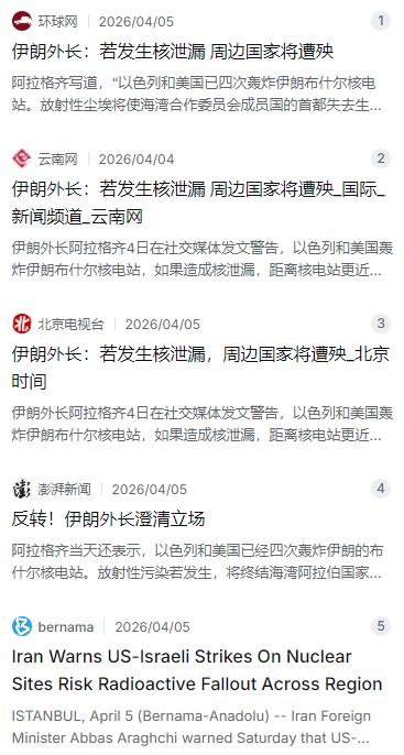 2026年4月4日,伊朗外长阿拉格齐在社交媒体上扔出了一颗重磅炸弹——不是炸弹,比炸弹更吓人。他直接对着海湾国家喊话:以色列和美国已经炸了布什尔核电站四次,一旦造成核泄漏,放射性尘埃不会先飘到德黑兰,而是直奔你们那些金碧辉煌的首都。
