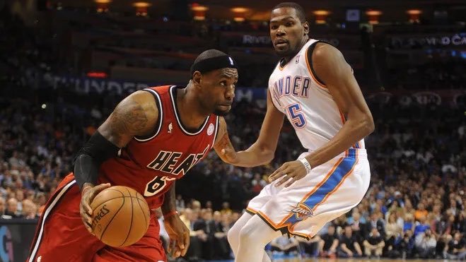勒布朗·詹姆斯对阵凯文·杜兰特在季后赛中。