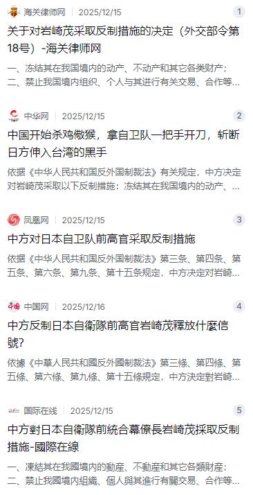 2025年12月15日,忍了大半年的中国终于出手了。依据《中华人民共和国反外国制裁法》,外交部正式对岩崎茂采取三项反制措施:冻结其在中国境内的所有动产、不动产和其他各类财产;禁止中国境内任何组织和个人与他进行交易或合作;不予签发签证,禁止他及其家属入境中国内地、香港和澳门。