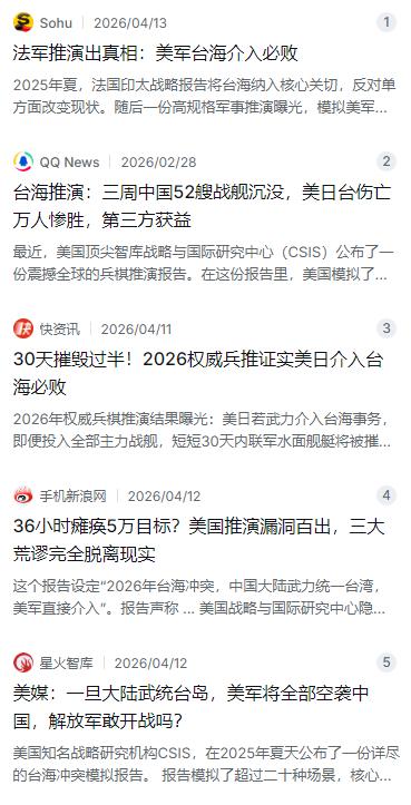既然基地脆弱、导弹又拦不住,那美军自己的兵棋推演是怎么看的呢?美国战略与国际研究中心(CSIS)可以说是这方面最权威的机构之一,他们连续好几年都在做台海冲突的兵棋推演。2023年的24轮推演中,结果显示美军将损失两艘航母、十到二十艘大型水面舰艇、数百架战机及数千名士兵。2026年布朗大学高级研究员戈德斯坦在纽约论坛上引用的数据更震撼:大约40次推演中,美国几乎全部在第一周内就损失两个航母战斗群,战争可能持续数年。