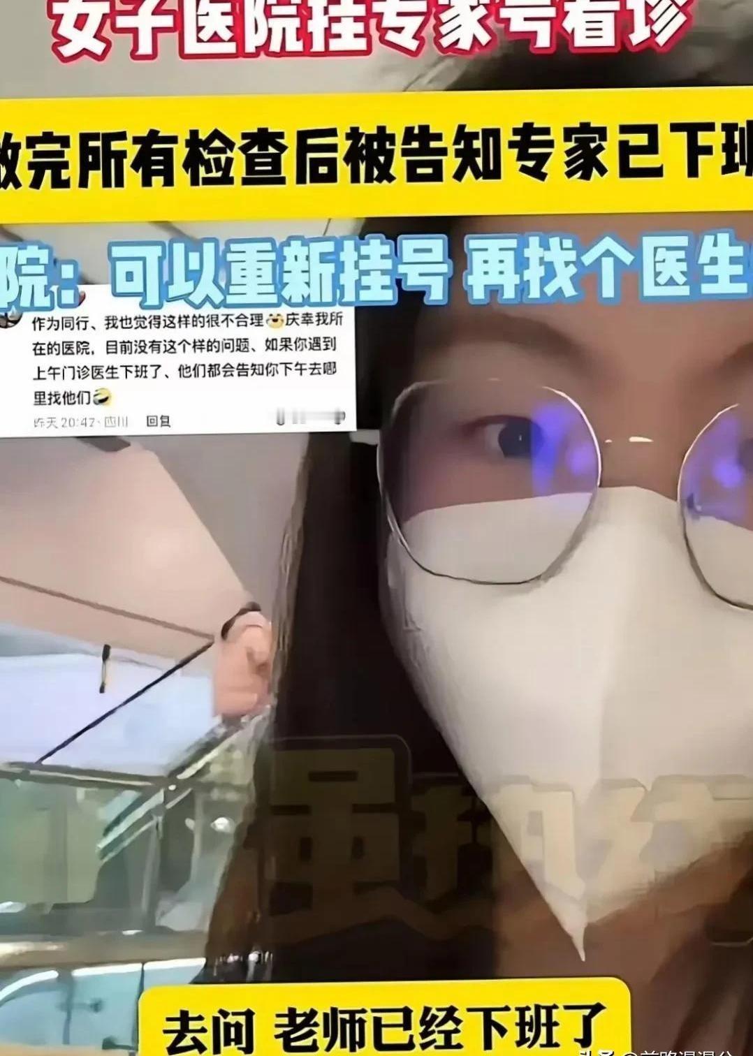 终于有人看不惯了!” 四川成都,女生花 90 多挂了个专家号,专家上来就开了一系列检查,让女子先去做。可是女子做完检查找专家,却被告知专家已经下班了!女子问护士怎么办?护士居然让女子再花 18 块钱给普通医生看?女生:“那我挂专家号图什么?”