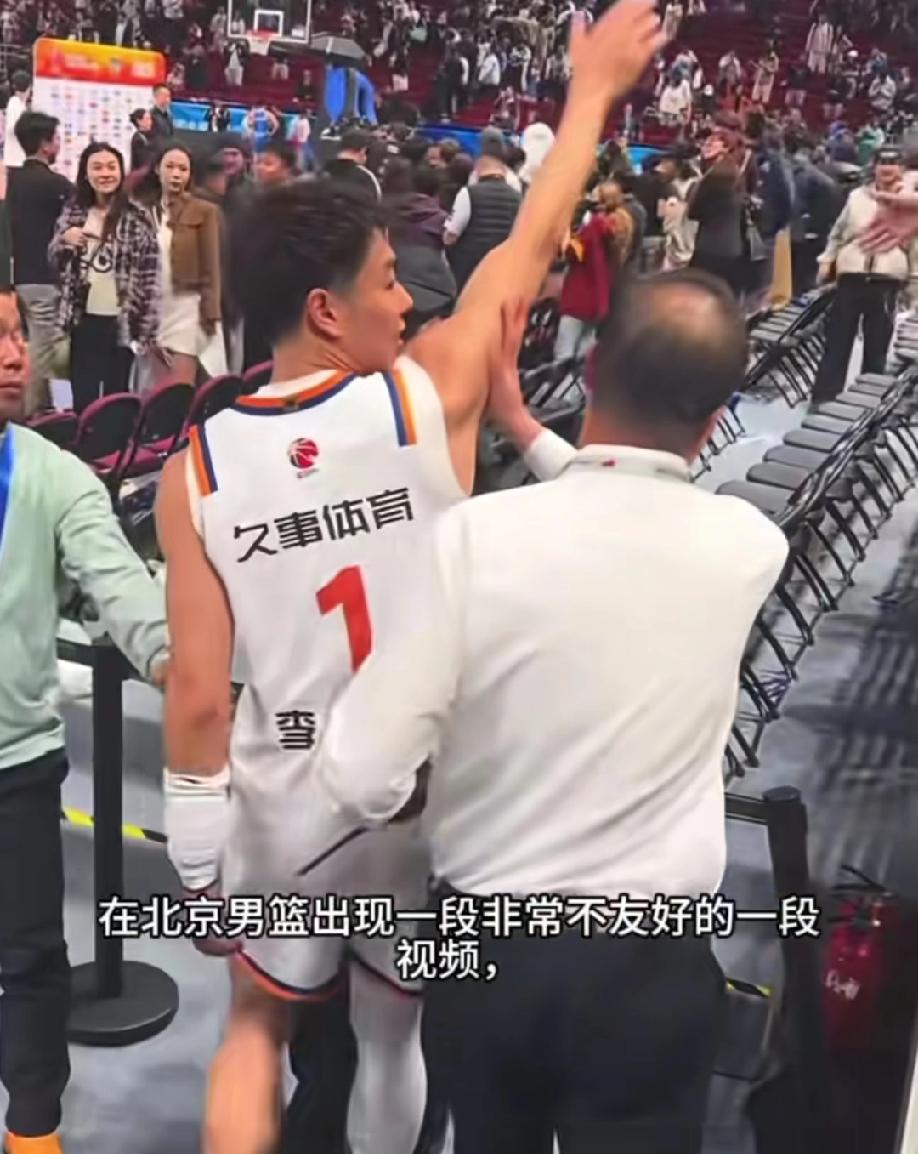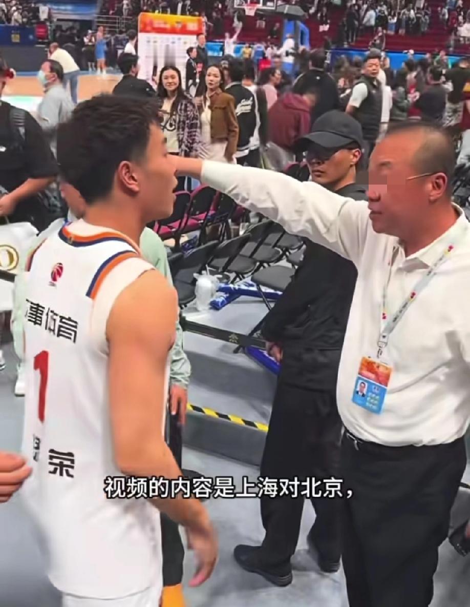 北京首钢主场,北京vs上海比赛已经结束了,上海队是获胜的一方,疑是上海队一球员想要跟看台上的球迷或者朋友互动一下,握个手什么的,不想遭到主场工作人员多次阻扰,上海队这位球员最后无奈只能悻悻离开……