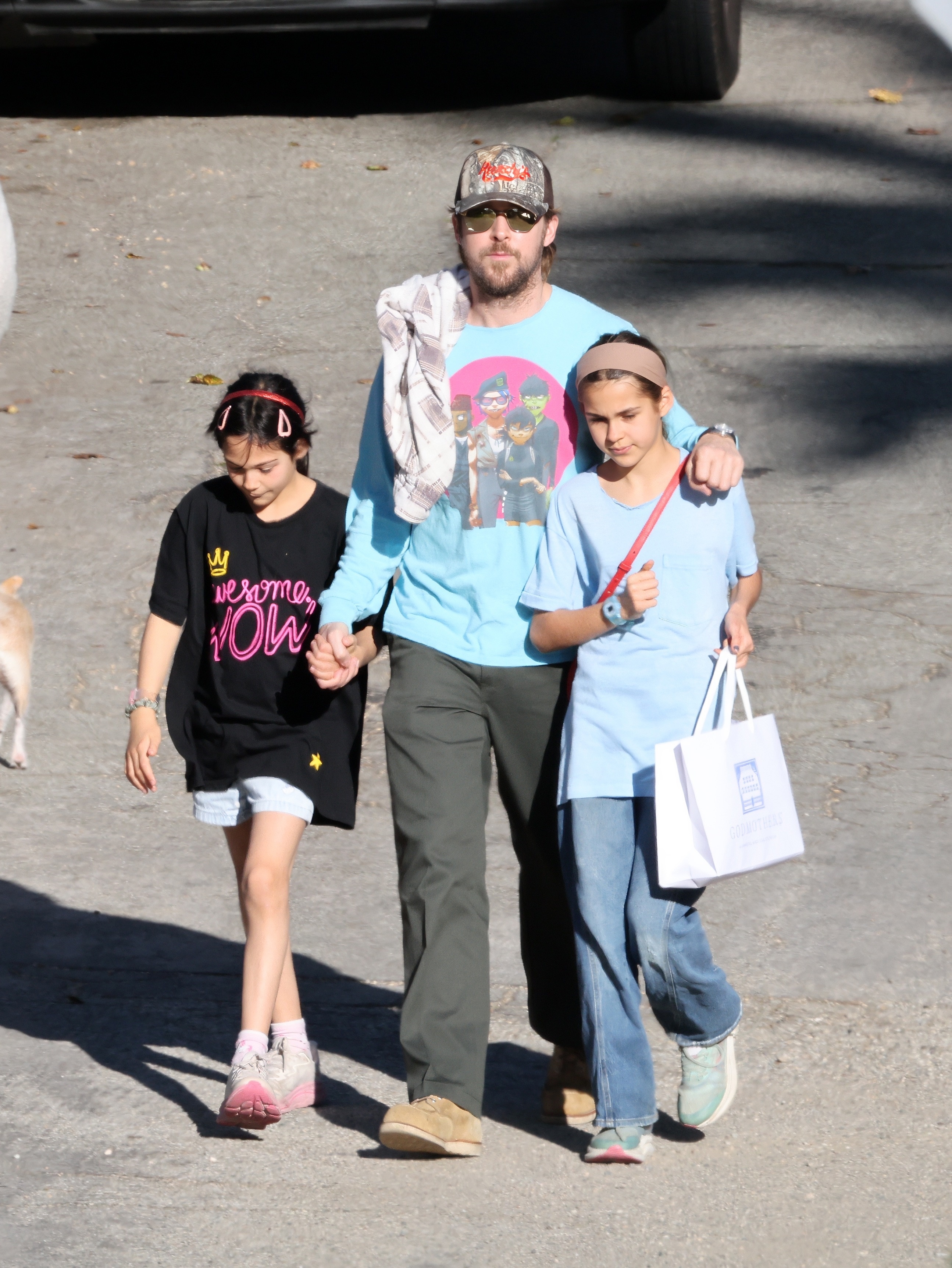 《挽救计划》Ryan Gosling 周末带两个女儿在Godmothers买书。