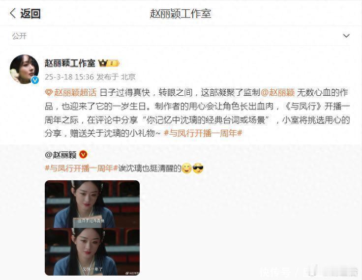 赵丽颖工作室发沈璃每次工作室放出沈璃的物料,都能直接封神,这才是仙侠大女主该有的排面✨从《与凤行》开播、收官到周年纪念,再到角色混剪、写真、杀青纪念,赵丽颖与工作室对沈璃的用心从未缺席。既是霸气凛然、一杆银枪战四海的碧苍王,“本王在此,谁敢放肆”的气场碾压一切;也是内心柔软、敢爱敢恨的灵界战神,藏着乱世里的深情与坚守。赵丽颖把沈璃的刚与柔演到了极致——战袍加身是睥睨天下的王者,青衣素裹是温婉沉静的女子,打戏利落、眼神有戏,每一个镜头都经得起反复细品。而工作室总能精准抓住角色精髓,用高清剧照、混剪视频、走心文案,一次次唤醒观众对沈璃的记忆,把“沈璃效应”拉满。从演员亲自监制,到每一次售后用心,赵丽颖与沈璃从来都是互相成就。这个角色不只是爆款剧里的经典,更成了内娱仙侠女主的标杆——独立、强大、清醒,不依附、不妥协,既有家国大义,也有儿女情长。好演员成就好角色,好角色被用心珍藏。沈璃永远是仙侠剧里最耀眼的存在,也期待赵丽颖未来再解锁更多让人难忘的角色,继续用实力惊艳所有人!💫