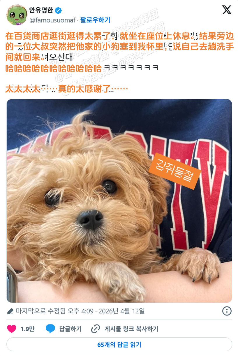 在商场里坐下歇会的时候,突然被旁边大叔拜托照顾一下小狗 海外新鲜事热点现场