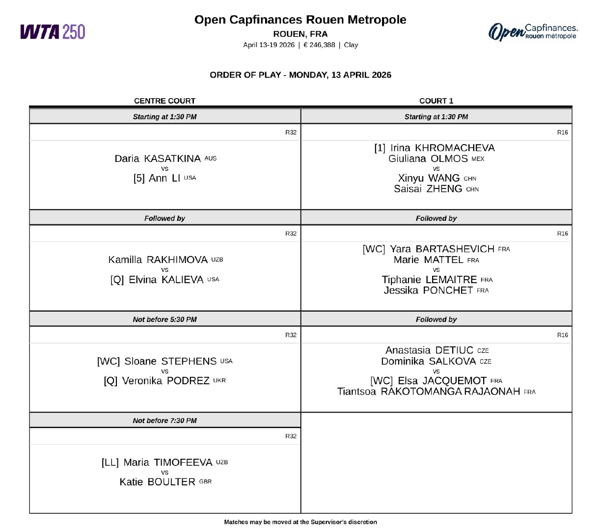 📍WTA250鲁昂站
